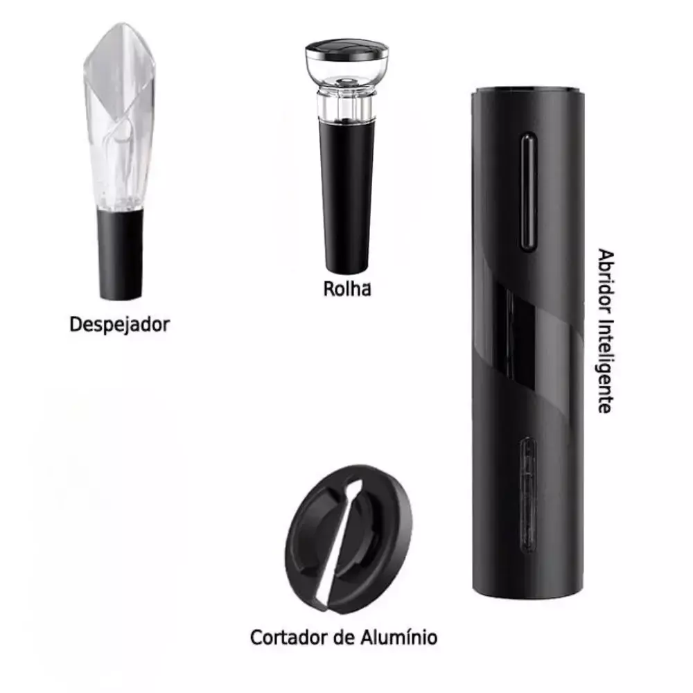 Abridor automático de vinho que remove a rolha em 6 segundos.